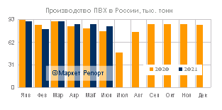 За первые шесть месяцев 2021 году общий объем выпуска ПВХ (несмешанного поливинилхлорида) достиг 515,9 тысяч тонн, что на 1% превышает результат за тот же период в 2020 году. При этом у двух крупных игроков на рынке полимеров отмечается уменьшение объемов выпуска ПВХ.