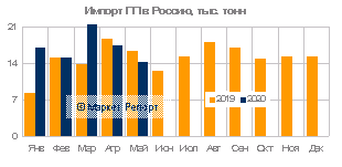 Количество ввезенных в мае гомополимеров пропилена снизилось до 4,9 тысяч тонн против 6,7 тысяч тонн месяцем ранее, что связано со спадом поставок из Азербайджана литьевого ПП-гомо. Всего же за прошедший период было поставлено 34 тысячи тонн этой продукции, тогда как в 2019 году — 25,3 тысячи тонн.