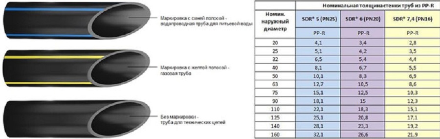 Таким образом, маркировка полиэтиленовых труб ПЭ ГОСТ предусматривают следующие параметры: