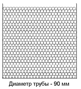 Труба Ø 90Количество труб: 648 шт. Количество, п.м.:12 п.м. – 7776 п.м. 12,5 п.м. – 8100 п.м. 13 п.м. – 8424 п.м. Высота загрузки: 2,42м. Количество рядов: 27 шт. (в рядах по 24шт.) |